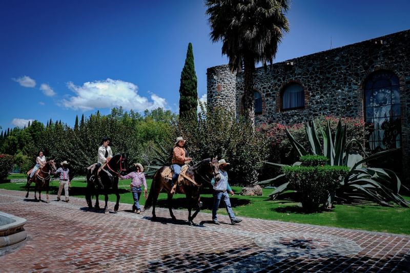 Three people cycling near Hacienda Cantalagua