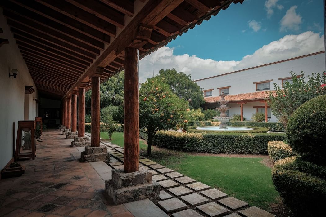"Es una hacienda colonial mexicana a unas dos horas de la ciudad de México, un lugar muy pacifico, tranquilo y natural. Lo bueno: Es un lugar hermoso con extraordinarios jardines y una construcción tipica de piedra y madera, las habitaciones son amplias y limpias, tiene una zona clásica y una moderna. El centro de convenciones es un antiguo granero inmenso, apto para cualquier evento o fiesta. La comida y cena al aire libre fueron muy especiales por el ambiente campestre. Parece en mucho un museo de la vida mexicana agropecuaria del siglo pasado. Adicional es que ofrecen un spa y club de golf con un excelente servicio. Recomendable para retiros, eventos o matrimonios."